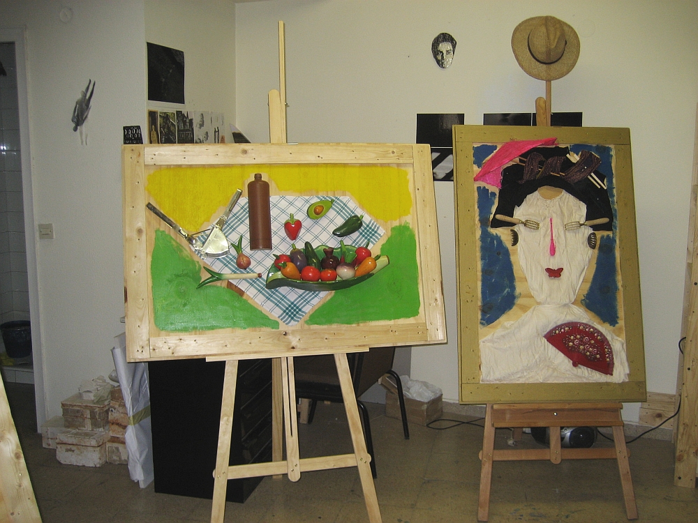 How it became a habit over the years, once a year I invite my friends at Madrid for a vernissage at my art atelier. There I present the artworks of the past year. In 2014 I painted 24 of my three-dimensional artworks with acrylic paint on canvas. It was the first time ever I painted on canvas. As result arose painted versions of my own artworks, which often themselves are interpretations of famous artworks.On February 28th it took place. The artworks I had hanged just beside in order to make possible the direct comparison of the 3D version and the painted version. The feedback of my friends was very positive. Some highlighted the colourful appearance of the painted works, and were surprised because they ever knew the artworks made with objects. Others encouraged me to stay with the 3D style, because that is really so unique.
