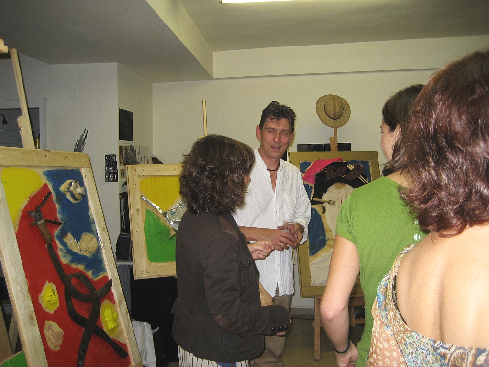 After three years, I decided it was high time to offer my friends another preview of my latest artistic efforts. They were already aware of a few of the twenty famous paintings from conversations and the odd photograph, which made them all the more curious to finally see the pieces up close. This time, I used the studio walls to hang the pieces, which allowed me to display considerably more than I had been able to in the past.