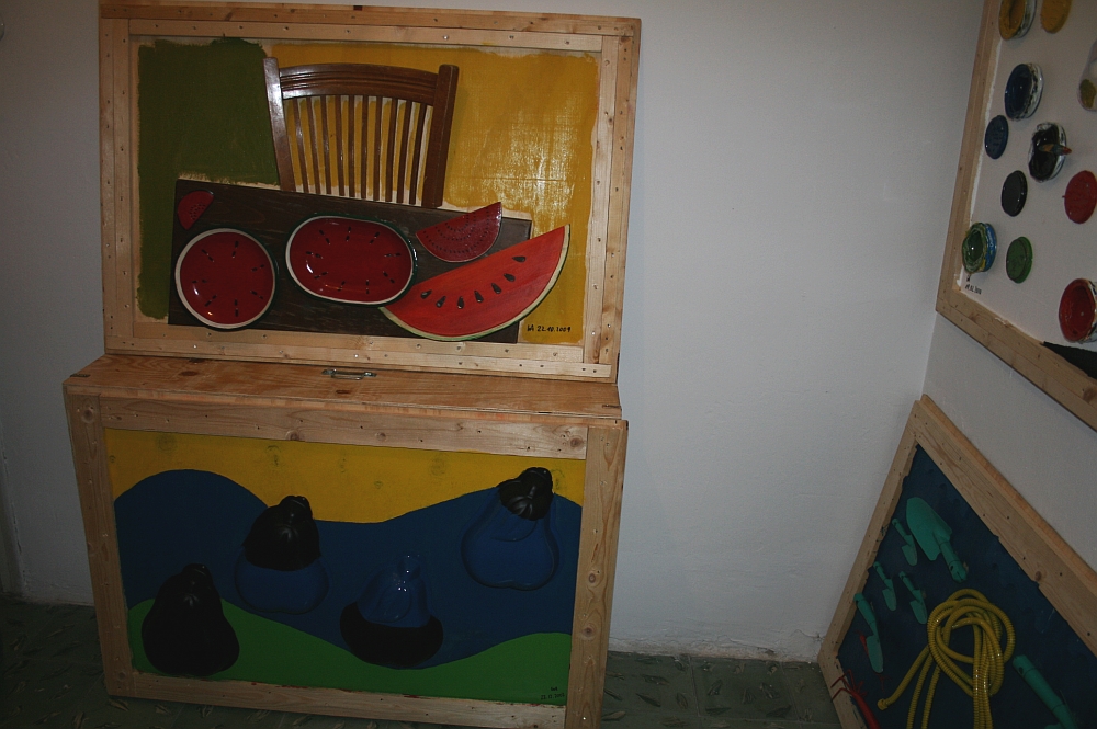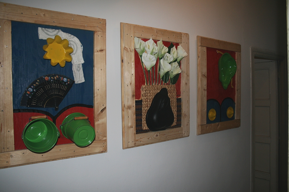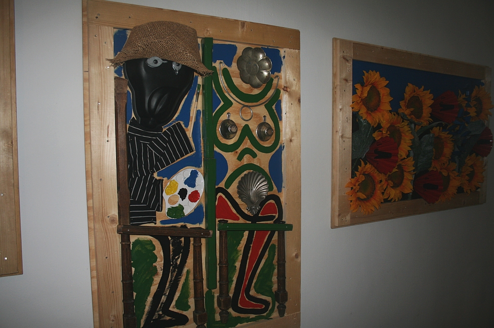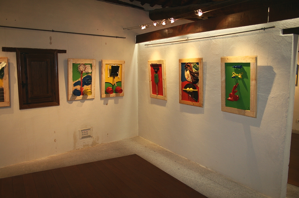 Buitrago de Lozoya at the Madrid county is the home of the Picasso Museum, where the hairdresser of Picasso, Eugenio Arias, exposes the presents he received from the gran maestro for his work. The museum with works of my artistic idol was since long time a target for a future exhibition of my art works, especially because some of my works are interpretations of famous art works of Pablo Picasso.It took considerable efforts to achieve an exhibition at Buitrago de Lozoya. Once I even brought four original artworks with me by car to present them there. By doing this it was possible to demonstrate the 3D effect of my art works, composed by objects, and, I could illustrate the relation to the museum by showing interpretations of art works of Pablo Picasso. For an exhibition at the exhibition halls of the Picasso Museum it was worth to make these efforts.