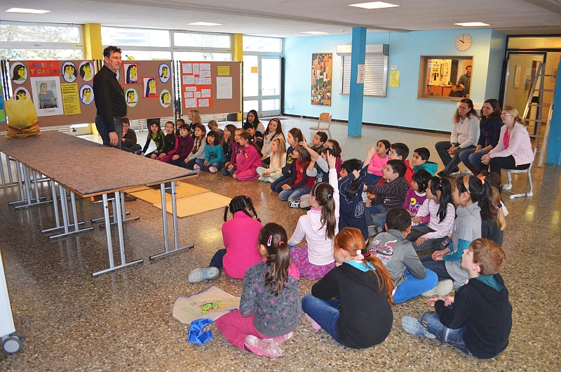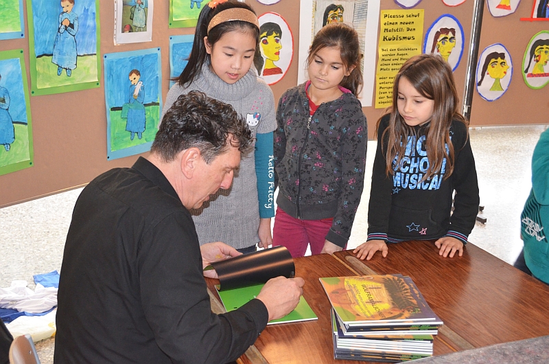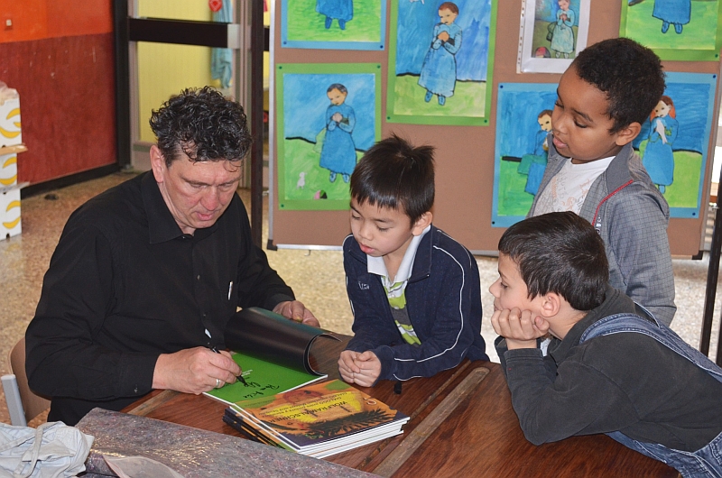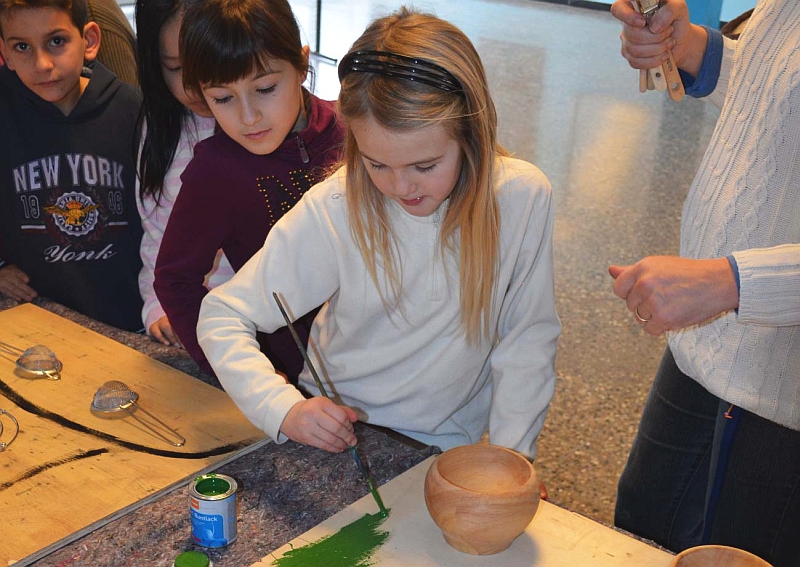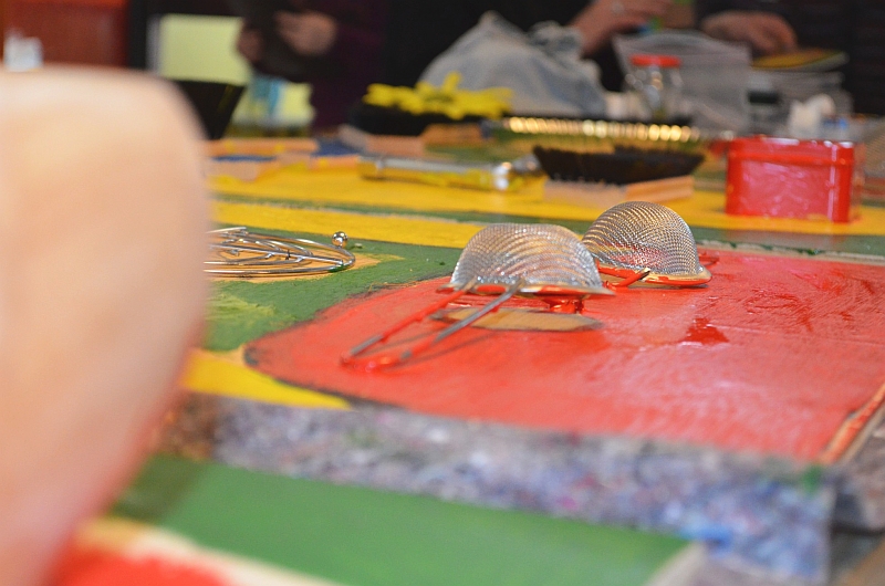 The children had already been learning about my style of art, so after a short introduction, we looked at the objects together and formed rough ideas of what we wanted to use. The next stage was one that the children were very keen to start, and involved fixing the objects in place using screws or by threading a fine thread through holes in the board. The children then spent the final hour painting their creations and at the end of the session, each of them received a signed copy of my catalogue.